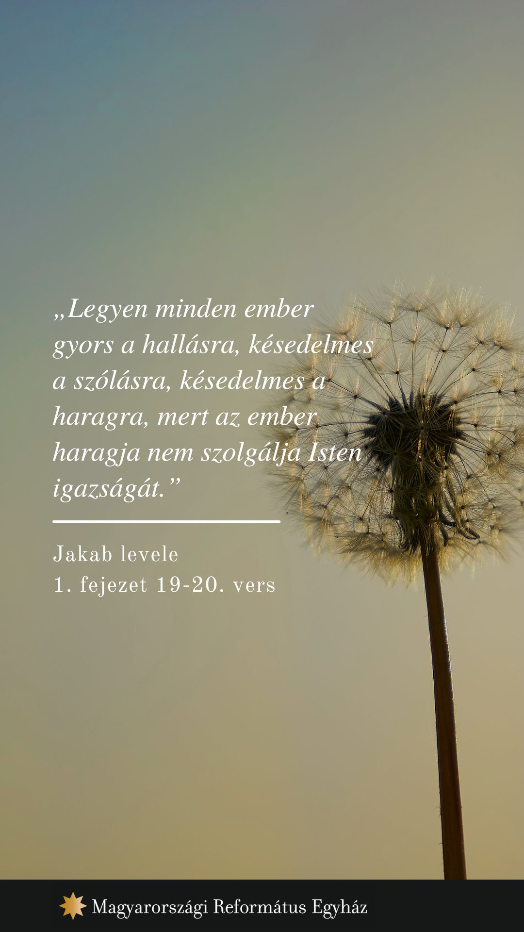 Mindennap, így mai bibliaolvasásunkban is legyen útmutatónk Jakab levelének figyelmeztetése: „Legyetek az igének cselekvői, ne csupán hallgatói, hogy be ne csapjátok magatokat” (22). Nem homályos tükröt kaptunk Krisztusban, hanem az élet beszédét. Akkor lesz hasznunkra: épülésünkre, megtartásunkra, boldogságunkra és üdvösségünkre Isten igéje, ha engedjük, hogy Isten „belénk oltsa” azt. Megmaradunk mellette, átformálva életünk, döntéseink, tetteink és szavaink gyakorlati, hétköznapi valóságát.