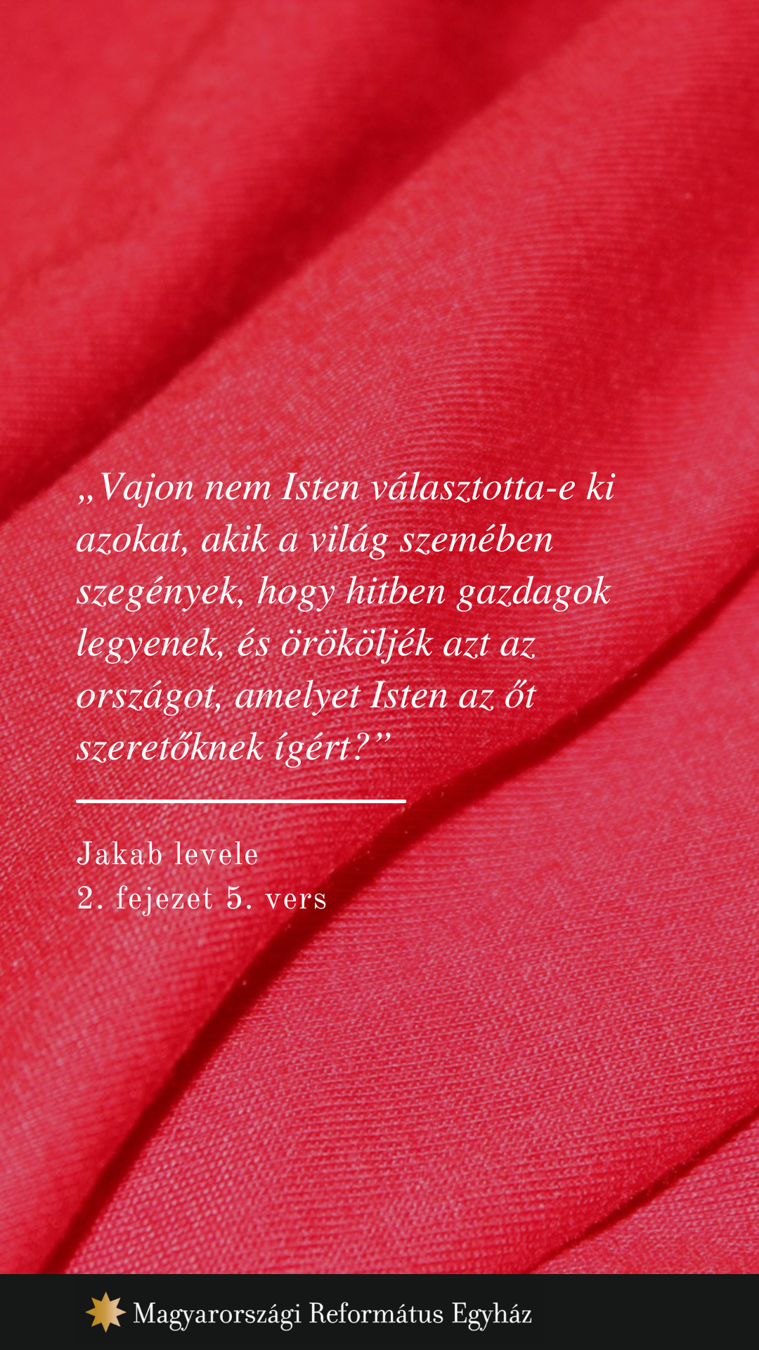 1 Testvéreim, amikor a dicsőséges Urunkba, Jézus Krisztusba vetett hitetek szerint éltek, ne legyetek személyválogatók. 2 Mert ha belép hozzátok a gyülekezetbe fényes ruhában egy aranygyűrűs férfi, és ugyanakkor egy szegény is belép kopott ruhában, 3 és ti arra figyeltek, aki a fényes ruhát viseli, sőt ezt mondjátok neki: „Te ülj ide kényelmesen”, a szegényhez pedig így szóltok: „Te állj oda”, vagy „Ülj le ide a zsámolyomhoz”, 4 nem kerültetek-e ellentmondásba önmagatokkal, és nem lettetek-e gonosz szándékú bírákká? 5 Figyeljetek csak ide, szeretett testvéreim: vajon nem Isten választotta-e ki azokat, akik a világ szemében szegények, hogy hitben gazdagok legyenek, és örököljék azt az országot, amelyet Isten az őt szeretőknek ígért? 6 De ti megszégyenítettétek a szegényt. Vajon nem a gazdagok hatalmaskodnak-e rajtatok, nem ők hurcolnak-e titeket törvény elé? 7 Nem ők káromolják-e azt a szép nevet, amelyről titeket elneveztek? 8 Ha ellenben betöltitek a királyi törvényt az Írás szerint: „Szeresd felebarátodat, mint magadat!”, helyesen cselekedtek. 9 De ha személyválogatók vagytok, bűnt követtek el, és a törvény mint törvényszegőket marasztal el titeket. 10 Mert aki valamennyi törvényt megtartja, de akár csak egy ellen is vét, az valamennyi ellen vétkezik. 11 Mert aki ezt mondta: „Ne paráználkodj!”, ezt is mondta: „Ne ölj!” Ha pedig nem paráználkodsz, de ölsz, megszegted a törvényt. 12 Úgy beszéljetek, és úgy cselekedjetek, mint akiket a szabadság törvénye ítél meg. 13 Mert az ítélet irgalmatlan ahhoz, aki nem cselekedett irgalmasságot, az irgalmasság viszont diadalmaskodik az ítéleten.