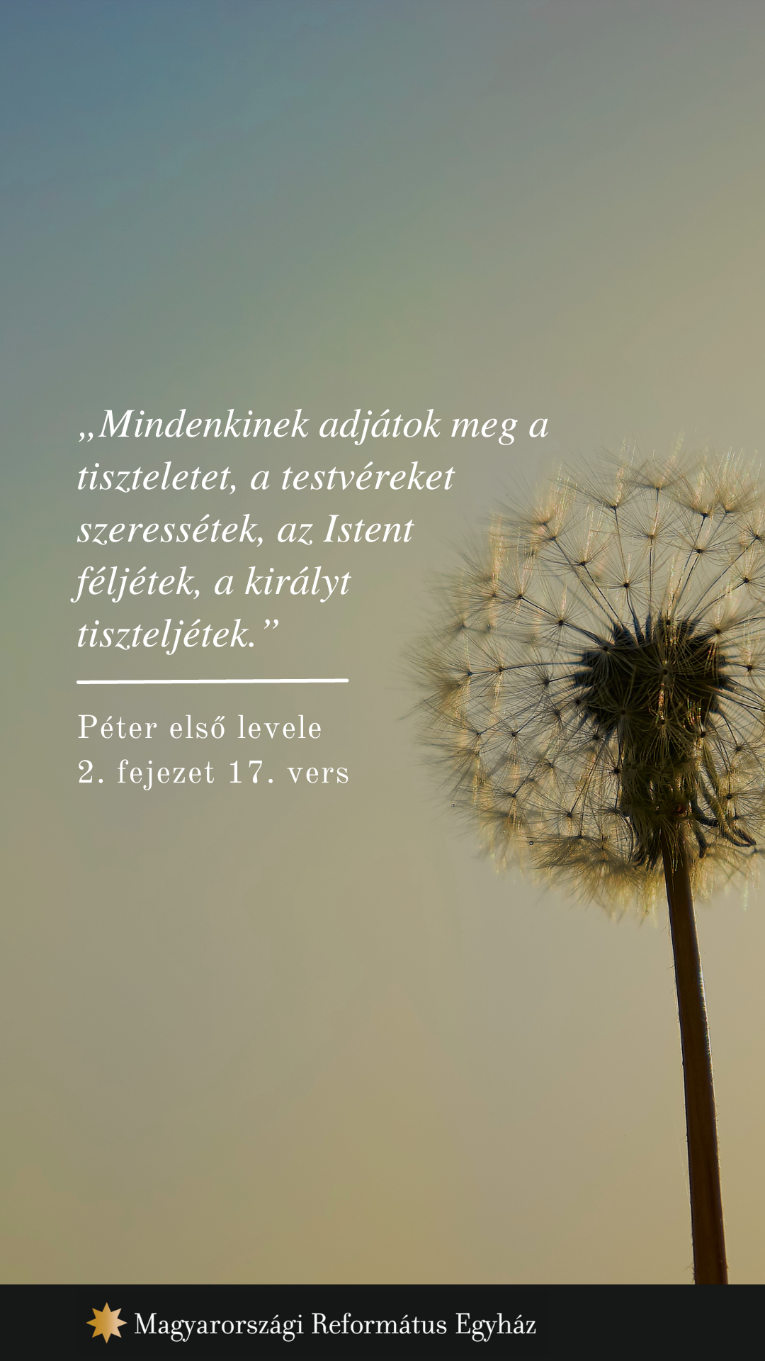 Megannyi vita vesz körül bennünket. Mi a helyes viszonyulás? Felvenni a kesztyűt minden rágalommal, sértéssel, valótlansággal, ferdítéssel szemben? Visszatámadni vagy inkább ráhagyni? Különösen ha valaki úgysem észérvekkel vitatkozik? „Ne felelj az ostobának a bolondságához illően, mert magad is hasonló leszel hozzá! Felelj meg az ostobának a bolondságához illően, hogy ne tarthassa magát bölcsnek.” (Péld 26,4–5) – mintha még maga a bölcs Salamon király is gondba kerülne ebben a kérdésben. Most akkor feleljünk, vagy ne feleljünk? A mai Ige azt a tanácsot adja, hogy felelj, de ne szóval, hanem cselekedettel. Kritikára, rágalomra, sértésre, vádra, ferdítésre, próbatételre – főleg az esztelenre – te csak tedd a jót, tedd azt, amit Krisztus példájából láttál, amire neki való engedelmességed, Krisztus-követésed kötelez. Cselekedd a szeretet tetteit, és ne zavartasd magad: „Mindenkinek adjátok meg a tiszteletet, a testvéreket szeressétek, az Istent féljétek, a királyt tiszteljétek.” (17)