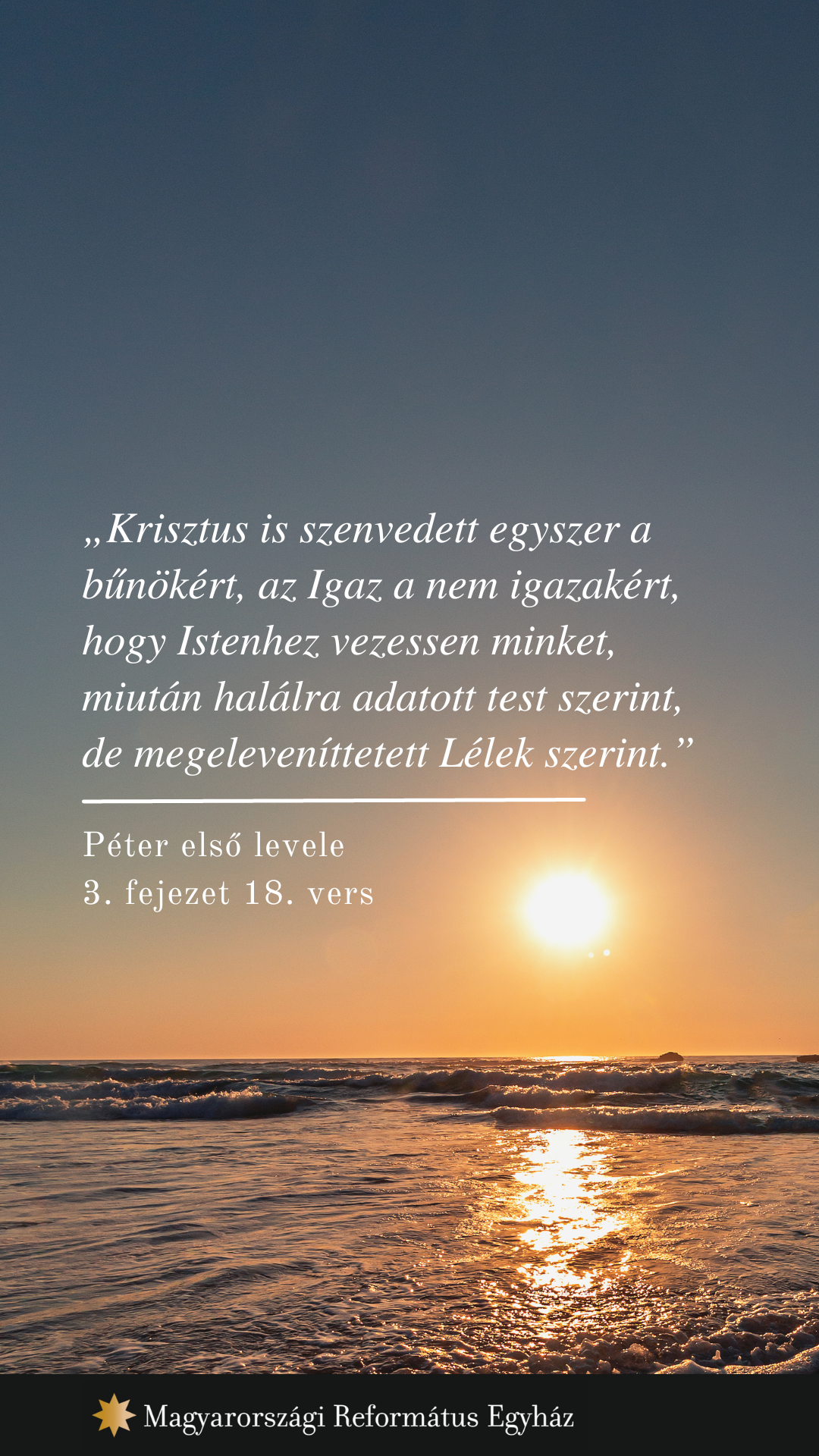 18 Mert Krisztus is szenvedett egyszer a bűnökért, az Igaz a nem igazakért, hogy Istenhez vezessen minket, miután halálra adatott test szerint, de megeleveníttetett Lélek szerint. 19 Így ment el a börtönben levő lelkekhez is, és prédikált azoknak, 20 akik egykor engedetlenek voltak, amikor Isten türelmesen várakozott Nóé napjaiban a bárka készítésekor. Ebben kevés, szám szerint nyolc lélek menekült meg a vízen át. 21 Most pedig titeket is megment ennek képmása, a keresztség, amely nem a test szennyének lemosása, hanem könyörgés Istenhez jó lelkiismeretért a feltámadt Jézus Krisztus által, 22 aki miután felment a mennybe, Isten jobbján van, és alávettettek neki angyalok, hatalmasságok és erők.