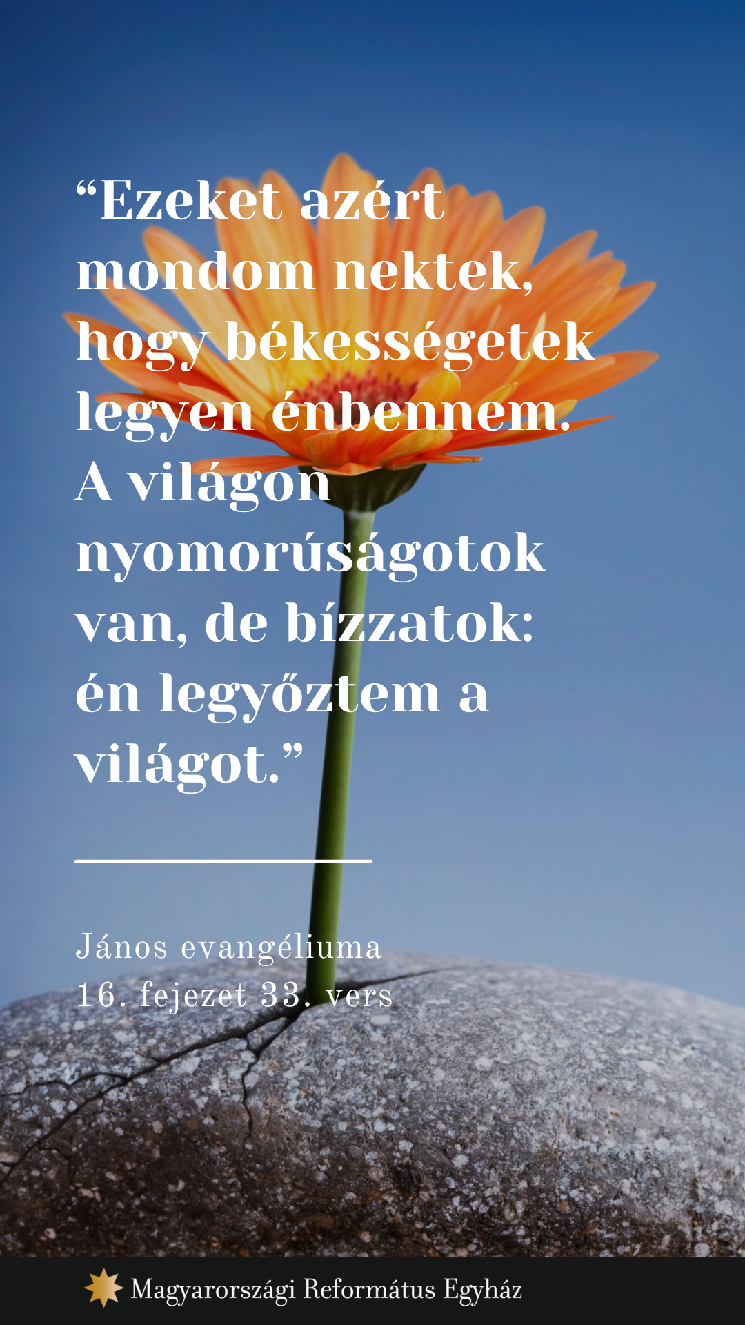 29 Ekkor így szóltak hozzá tanítványai: Íme, most nyíltan beszélsz, és nem példázatot mondasz. 30 Most már tudjuk, hogy mindent tudsz, és nincs szükséged arra, hogy valaki megkérdezzen téged: ezért hisszük, hogy Istentől jöttél. 31 Jézus így válaszolt: Most hiszitek? 32 Íme, eljön az óra, sőt már el is jött, amikor elszéledtek, mindenki a maga otthonába, és engem egyedül hagytok: de én mégsem vagyok egyedül, mert az Atya velem van. 33 Ezeket azért mondom nektek, hogy békességetek legyen énbennem. A világon nyomorúságotok van, de bízzatok: én legyőztem a világot.
