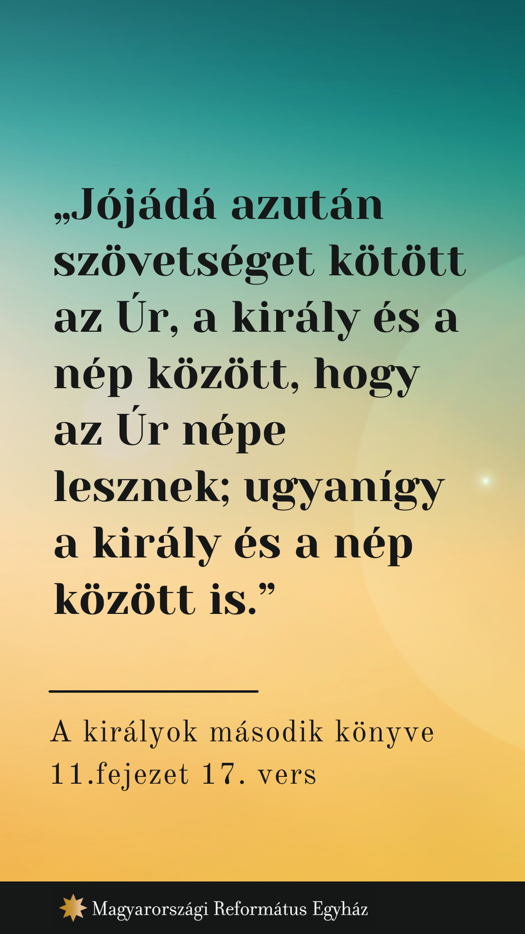 A júdai királyoknál megemlítik az anya nevét is, jelezvén, hogy fia trónra kerülésével, sőt annak halála után is rangot képvisel a királyi házban és az országban. Ataljá anyakirálynő a fia halála után maga akart uralkodni. Keleti szokás szerint ki is irtotta (volna) a család megmaradt férfitagjait, s ezzel Dávid házának uralmát is (!). Sógornője, a főpap felesége azonban megmenti az egyik unokát, Jóást. Kilopta a halálra szánt csecsemők közül dajkájával együtt, és a templomban rejtegette őt, egészen hétéves koráig (2–3). Micsoda gondos törődés, türelem és kitartás kellett ahhoz, hogy a gyermeket évekig titkon, mégis méltón neveljék! Mekkora hit és hazaszeretet kellett ahhoz, hogy ne árulja el senki, aki az ügybe be volt avatva! Szent összeesküvés volt ez, mégpedig precízen eltervezett a legapróbb részletekig. Isten ügyében jártak, ezért a templom őrségét is beavatták. A főpap szövetséget kötött a katonai parancsnokokkal, hogy a királyválasztást és kihirdetését ünnepre szervezzék meg (4). Izráelben a próféta, Júdában a főpap kente föl az uralkodót (12). Szégyen, hogy az egyetlen királynő a történelmükben gonosz nagymama. Rémuralmának pedig szomorú vége lett. A nők is beleszólnak a történelem alakulásába. Kérdés: hogyan?
