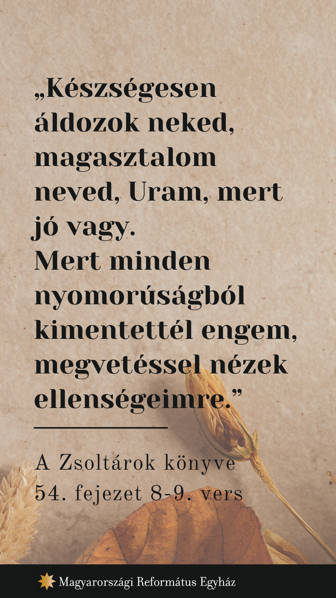 „Készségesen áldozok neked, magasztalom neved, Uram, mert jó vagy.” Zsolt 54