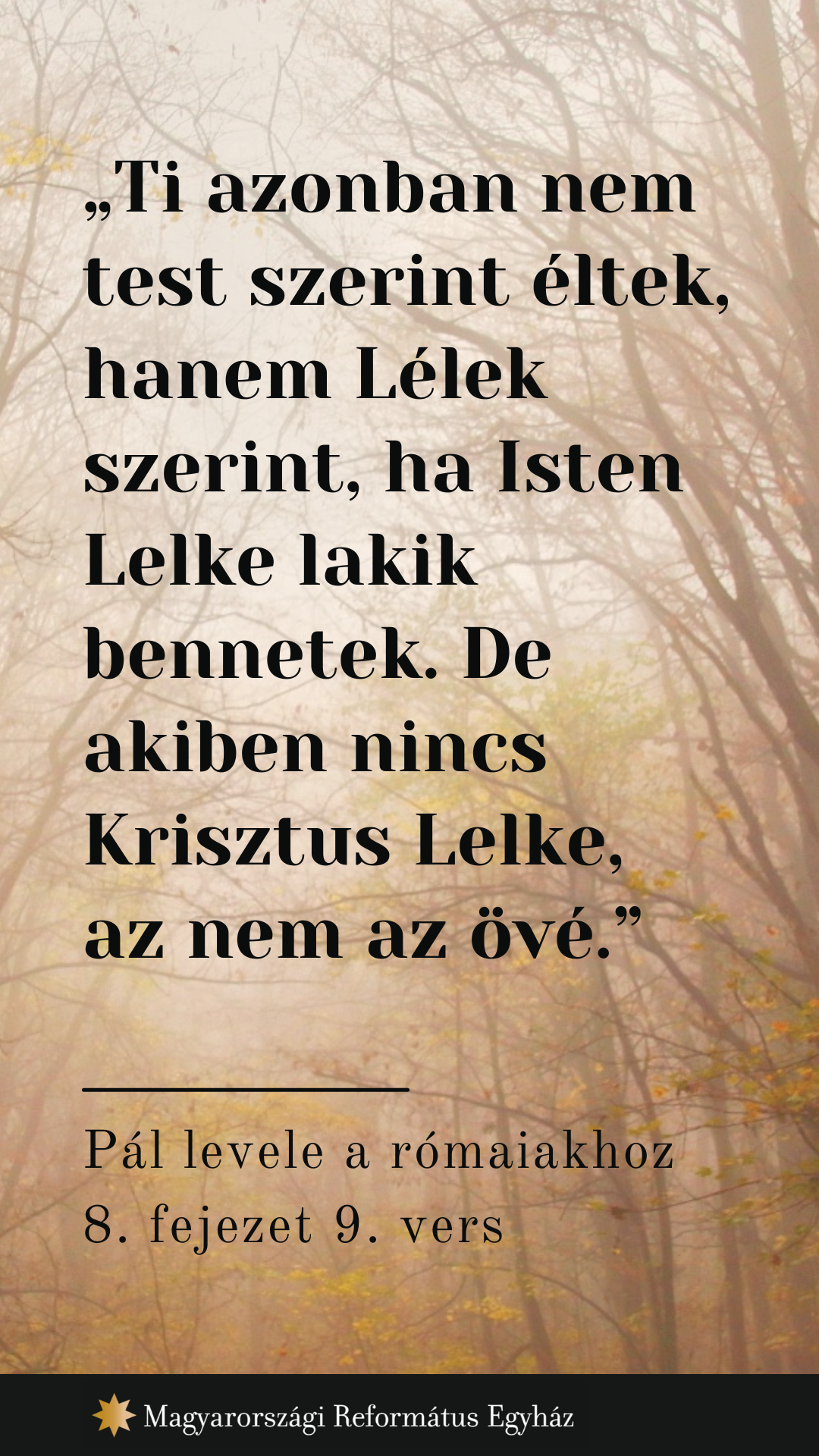 „Maga a Lélek tesz bizonyságot a mi lelkünkkel együtt arról, hogy Isten gyermekei vagyunk.” Róm 8,1–17