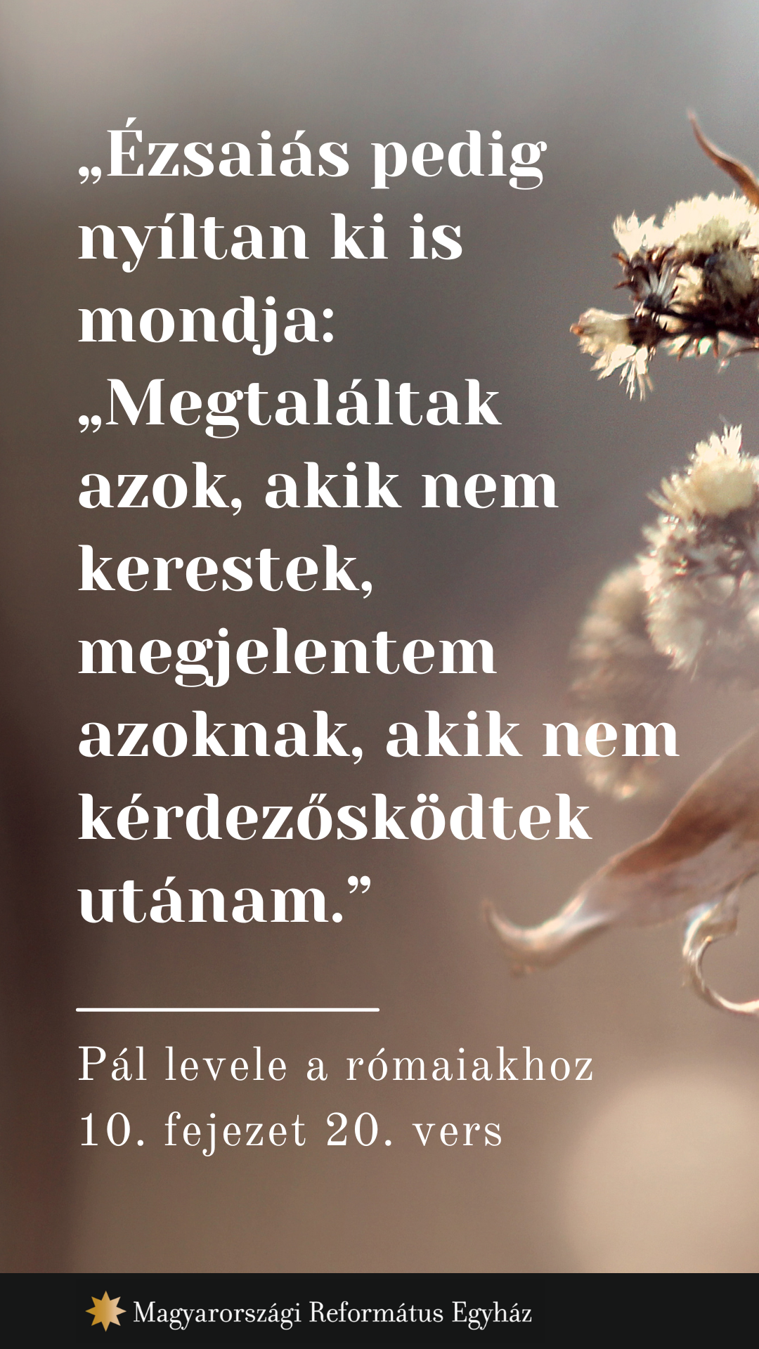 Pál a kapcsolatról, a kapcsolódásról beszél. Hókuszpókuszok, vallásos csodateljesítmények és misztériumvallásokra jellemző beavatások helyett Isten szabadítása meglepően hétköznapi módon lesz a miénk. Elhangzik a szó, az üzenet: érthető, én meghallom, megmozdítom a szívem, az életem, és a Szentlélek segítségével elkezdődik bennem valami teljesen új. Ezzel együtt ugyanez a Lélek rám bízza, hogy mondjam tovább. Csodaszép láncolat, amely Jézustól indult, az ő beszédéből, és minden láncszeme hordozza is Jézust. A szabadítás jó híre hallható és érthető. Jézus által átformált és megmozdított emberek hirdették szavaikkal és tetteikkel. Nem lehet kikerülni. De lehet nemet mondani, elzárkózni, megkeményedni. Még úgy is, hogy minden Isten megváltó szeretetét visszhangozza. Pál a saját népéről beszél. De nekünk is meg kell hallanunk a figyelmeztetést. Hallod magad körül, magadban Jézus Igéjének élő visszhangját. De engedned kell neki a hit első lépéseinél, de azután is, újra és újra. És persze hirdetni, továbbadni – másoknak is. Ez már küldetés.