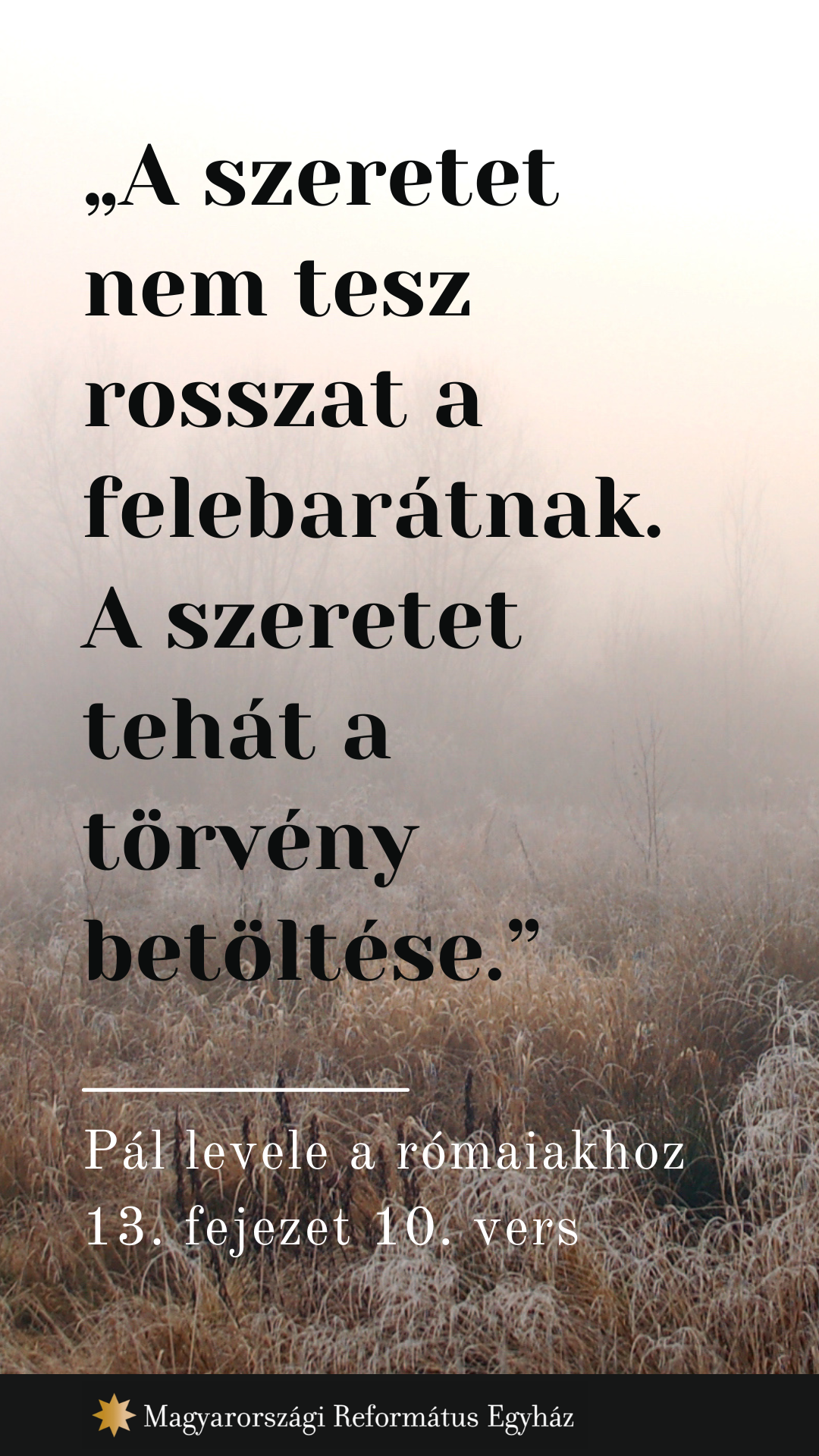 „Senkinek ne tartozzatok semmivel, csak azzal, hogy egymást szeressétek, mert aki a másikat szereti, betöltötte a törvényt.” Róm 13,8–14