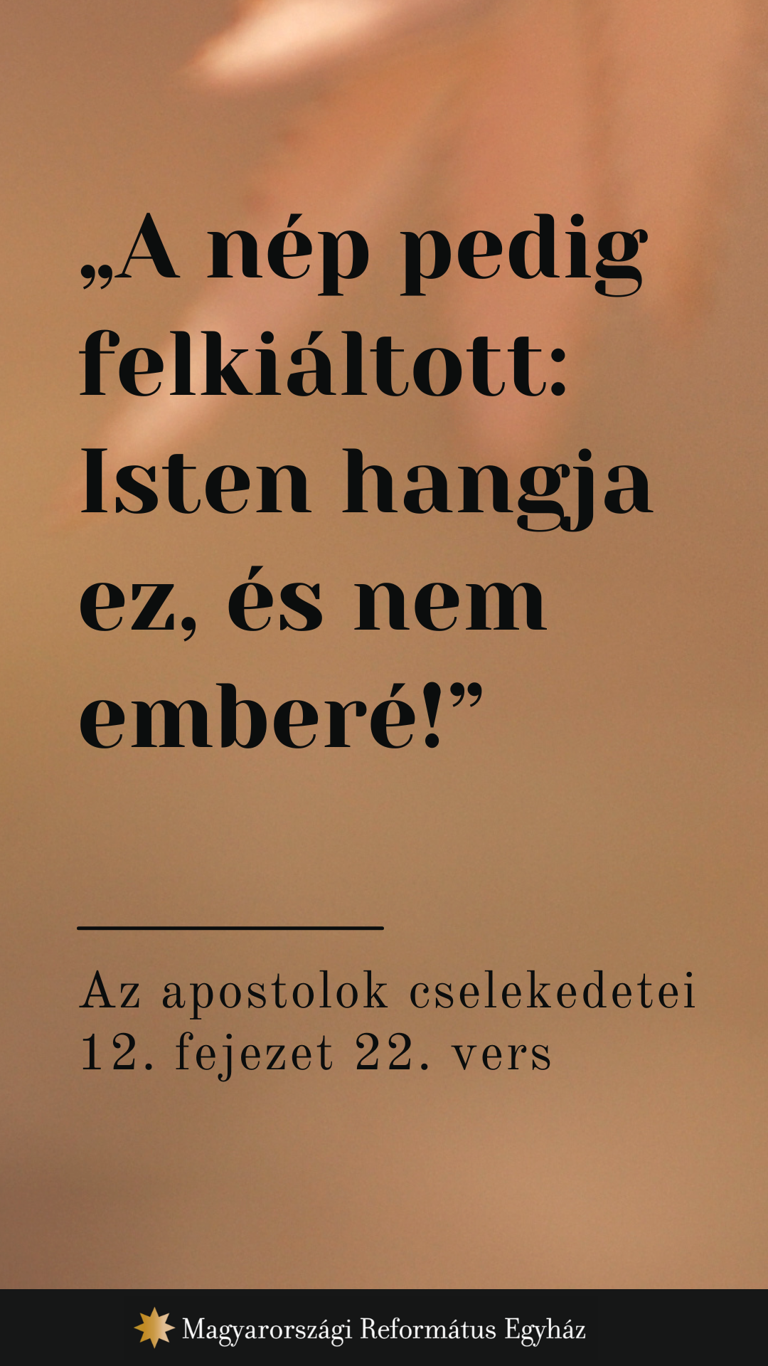 Heródes elutasító a tírusziakkal és a szidóniakkal, mégis fogadta a város lakóit, akik látva, hallva őt így kiáltottak: „Isten hangja ez, és nem emberé!” (22) Ki élelemért, ki a túlélés okán, ki a szebb jövő reményében, ki megfelelési vágyból hódol be. Uram, óvj attól, hogy bármiféle hasznot várva vagy tévedésből istenítsek bárkit vagy bármit helyetted! Add, hogy mindenkor a te neved dicsőségét hirdessem!