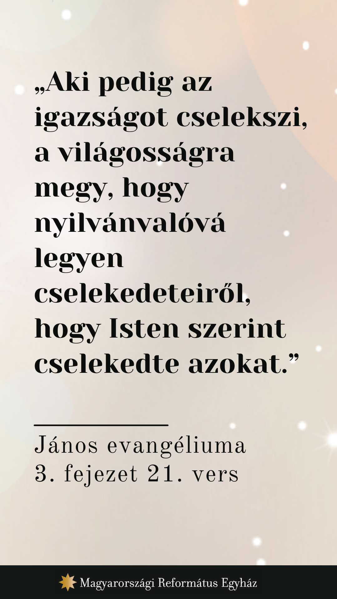 „Ha valaki nem születik víztől és Lélektől, nem mehet be az Isten országába.” (5) Az esztendő fordulóján napi igénk kétféle eseményről beszél, ami elhozhatja a számunkra készített megújulást. Víztől születni a keresztségünkre utal. Az óember halálára. Nekünk, akik már régóta keresztyének vagyunk, fájdalmasan nehéz dolog ez. Az óemberünk jól megtanult már rejtőzködni. De „ami testtől született – test az” (6), még ha másnak is akar mutatkozni. Vizsgáljuk meg az elmúlt évünket így is: mi volt az, ami testtől született benne és ezért pusztulnia kell? De lehet Lélektől is születni. Megrázó és váratlan átalakulás ez. A szem számára láthatatlan ragyogás, a fül számára hallhatatlan megszólítás, a test számára felfoghatatlan összekapcsolódás Isten országával. Ekkor csodálkozva ismerjük fel magunkban: „Eljött a hit” (Gal 3,20). Biztosan eljön majd mindazokhoz, akik csendben, kitartó állhatatossággal várják a Lélek érkezését.