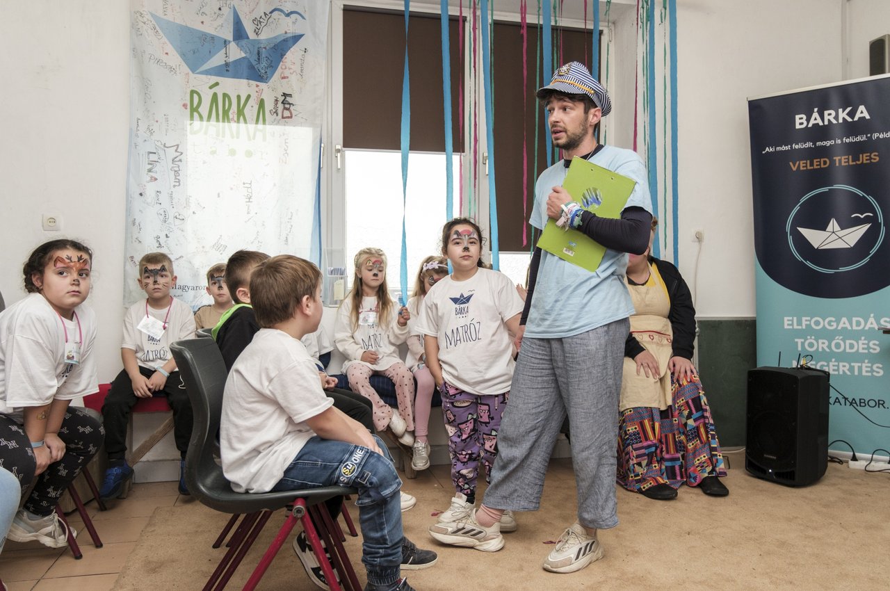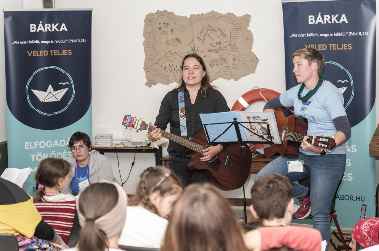 – Péter vagyok, a kőszikla! Nagyon örvendek! Péter, a kőszikla, örvendek! – mutatkozik be az apostol bőrébe bújt lelkipásztor a falu református hittanosainak, és igyekszik minél többükkel kezet fogni, majd megosztja velük a történetét, amelyben a Messiás a vízen jár. – Ha te vagy Jézus, én meg Péter, a kőszikla, mondd, hogy én is menjek feléd a vízen! – közvetíti a Szentírás szavait Pálfalvi J. Viola, a Bárka tábor vezető lelkipásztora. A dramatizált történetmondást lelkésztársa által vezetett interaktív tanítás, éneklés és imádság követi.