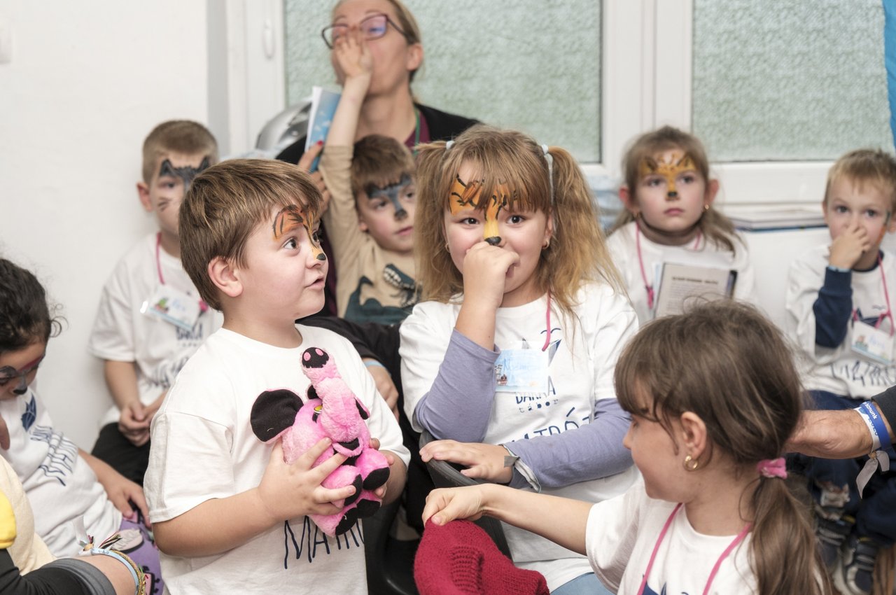 Hórukk, hórukk, hórukk – eveznek a legkisebbek a délutáni programra. A négyéves, kiscicának maszkírozott Emili a többi mellett azt is elárulja, miről szól számára a tábor. – Nagyon sok zenét hallgatunk, meg énekelünk, táncolunk – majd elszalad a többiek után.